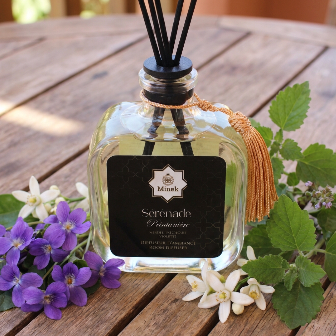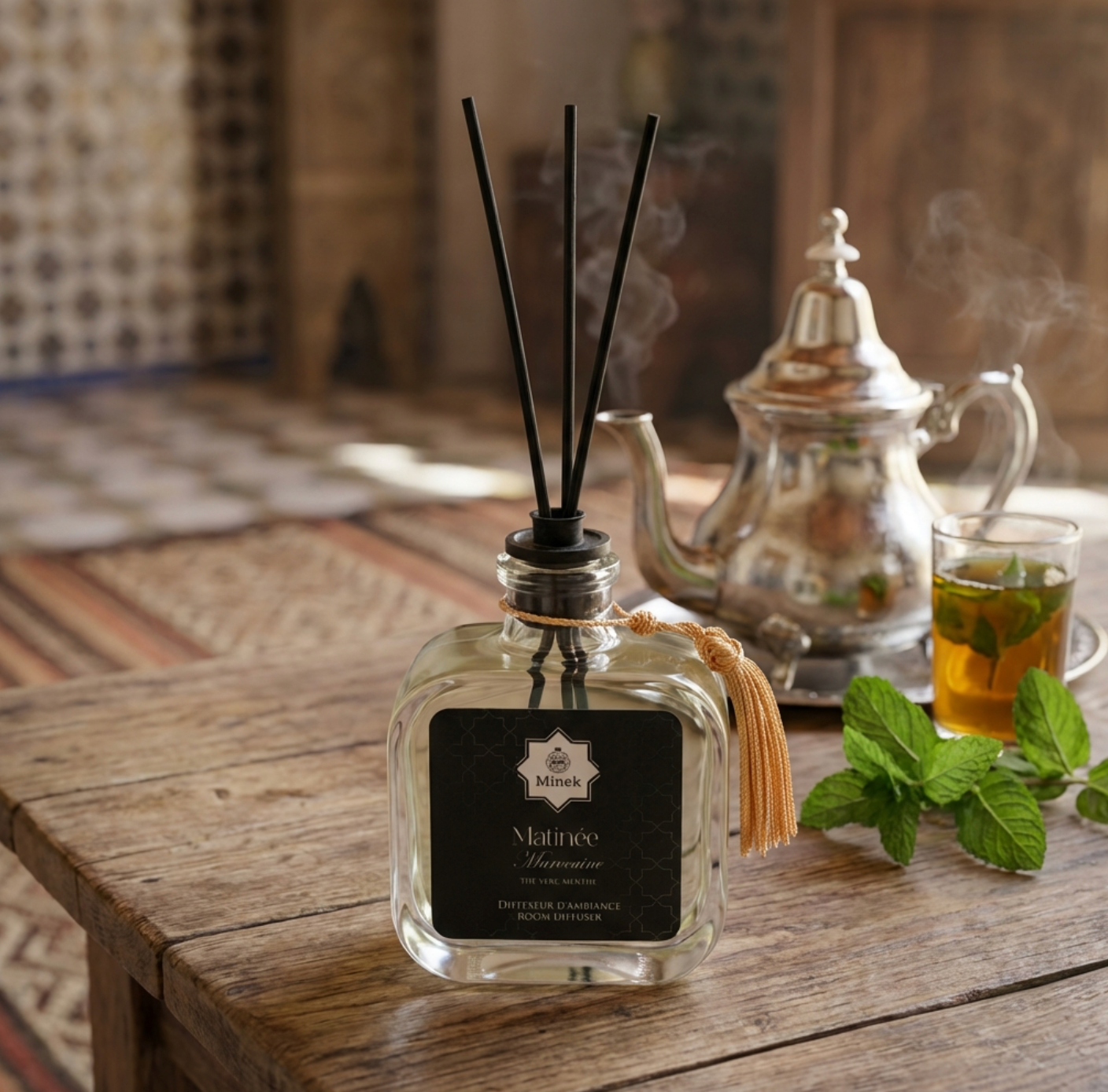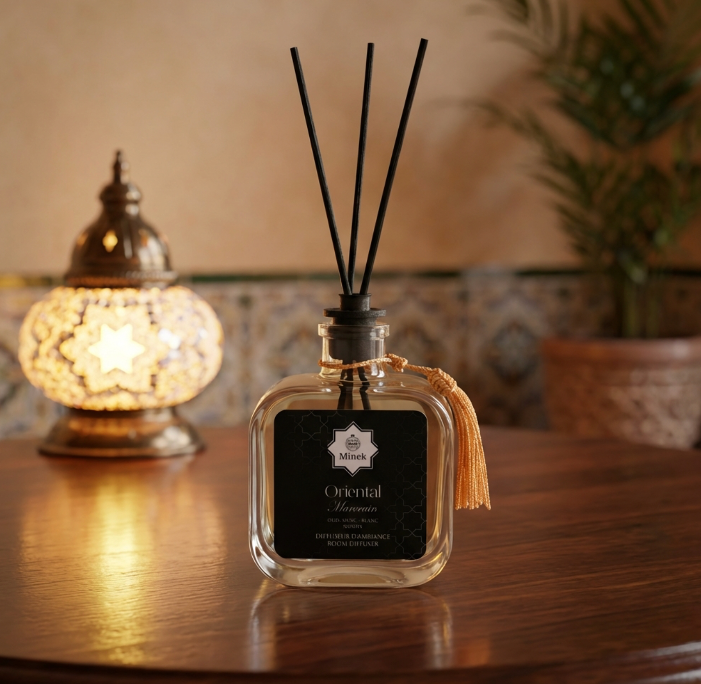 Transformez votre intérieur avec le diffuseur de parfum Mïnek, l’allié parfait pour une ambiance raffinée et chaleureuse. Inspiré des souvenirs du Maroc, ce diffuseur à bâtonnets libère lentement ses effluves délicats pendant plusieurs semaines, sans flamme ni électricité.