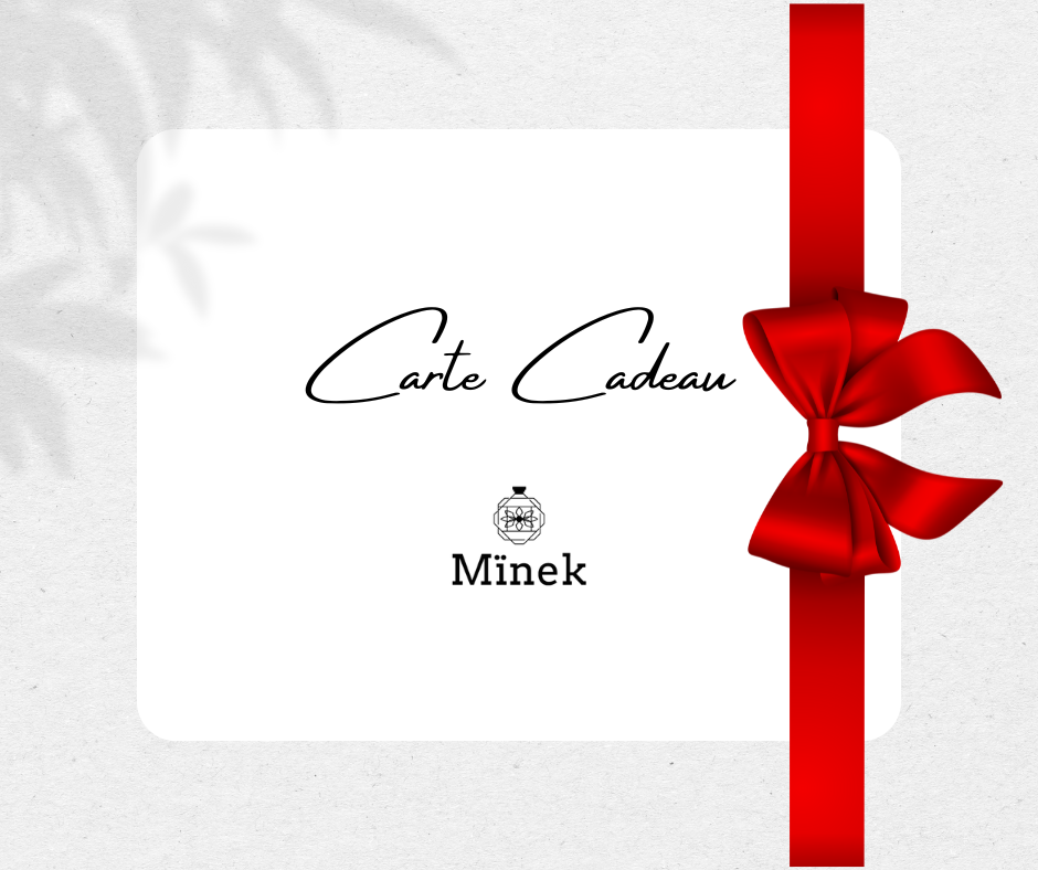 La carte cadeau Mïnek permet de choisir librement parmi l’ensemble de nos collections : parfums d’intérieur, rituels hammam et coffrets.