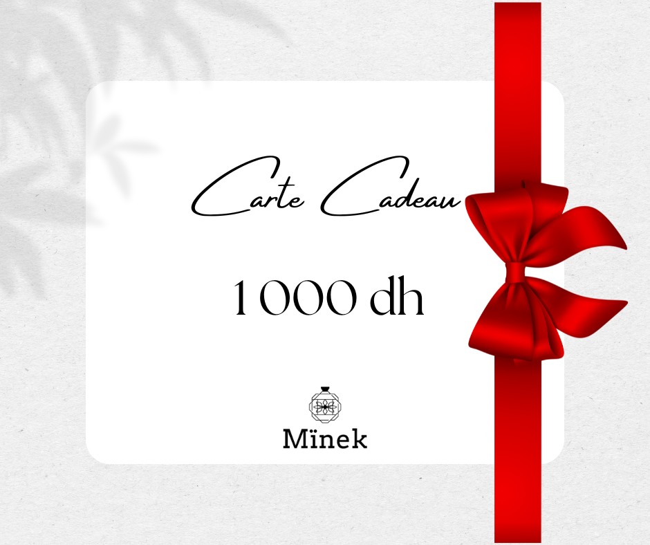 – Carte cadeau valable sur l’ensemble du site www.minek.ma